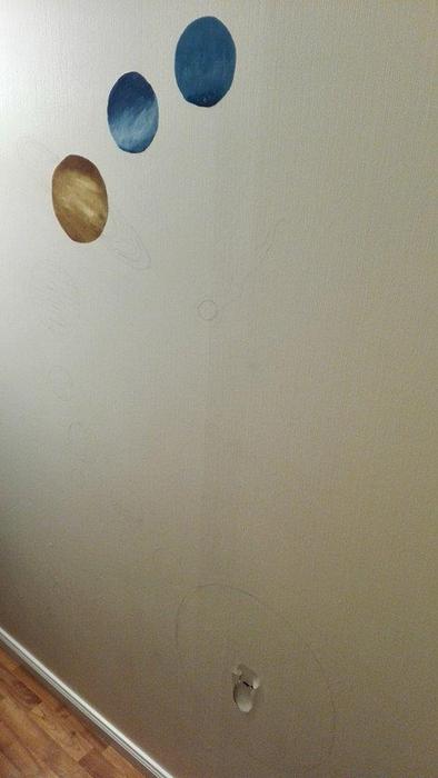 Рядом сидит жена, медленно рисуя на стене, медленно но уверенно закрывая краской мною пробитую стенку в регипсе...Не судите строго, бывает- с пацанами пивка...