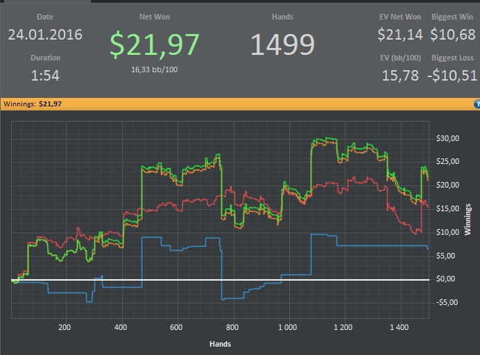 прошлый месяц играл мало. результат около 7 бб на 100 и около 8 ев бб на 100: нл25 нл10 + около 100$ мтт и мтснг+ около 100$ бонусы. вполне я считаю как для доп зароботка с учетом того что играл дней 10 со всего месяца