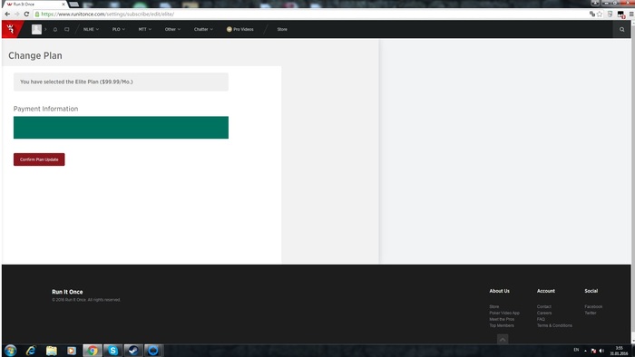 Всем привет! :) Решил немного улучшить свои покерные навыки и посмотреть пару обучающих видео на runitonce. Но столкнулся с проблемой, так как не могу проапгрейдить мой аккаунт, писал в службу поддержки 2 раза, там почему-то мне никто не отвечает. Может у кого-то есть там аккаунт? И, возможно, кто-то сталкивался с подобной проблемой? Скриншот к сообщению прилагаю.