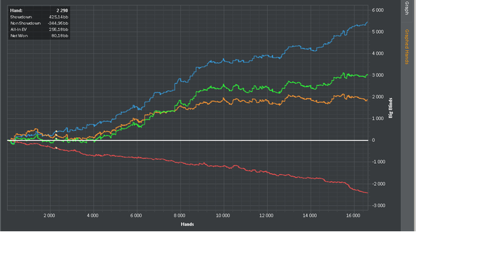 не ставлю с-бет так как он не плюсов тут и опп не сдается на них -фолд на сбет на флопе в 3 б банке -36 из 14 случаев. миссбет на терне 100% (4) кроме того не могу продолжить ставить на терне на многих картах. линия сбет флоп-чек-фолд терн - по его статам это сжигание денег ему.