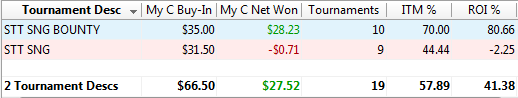 Начинаю подмечать, что нокауты идут значительно лучше, с чем связано - не очень понимаю, структура турнира ведь такая же (помимо самого баунти). По итогам 300 турниров буду делать выводы - если разница будет существенной, буду катать только нокауты.