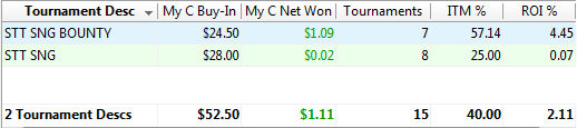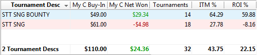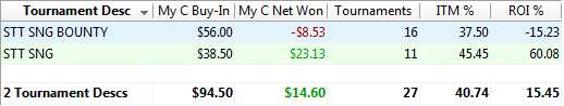 Рано или поздно этот день должен был настать Сначала отыграл сессию 15 турниров в -$30, потом вторую сессию - отыгрался в 0, а под ночь решил плюсануть и загрузил третью сессию - уставший и сонный опять слил $30. Общий итог -$29 На выходных буду отыгрываться.