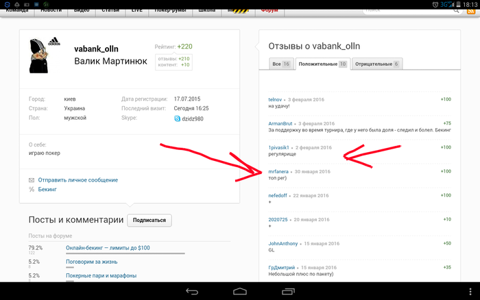 Данный "герой", получив денежные переводы от дольщиков на игру, внезапно показал статус оффлайн, позже спустя несколько часов сообщил ,что отключили интернет пакет не играл, переведу деньги обратно. Деньги так и не перевёл, хотя выходил онлайн утром.На ЛС не отвечает, не в скайпе не ДТ.