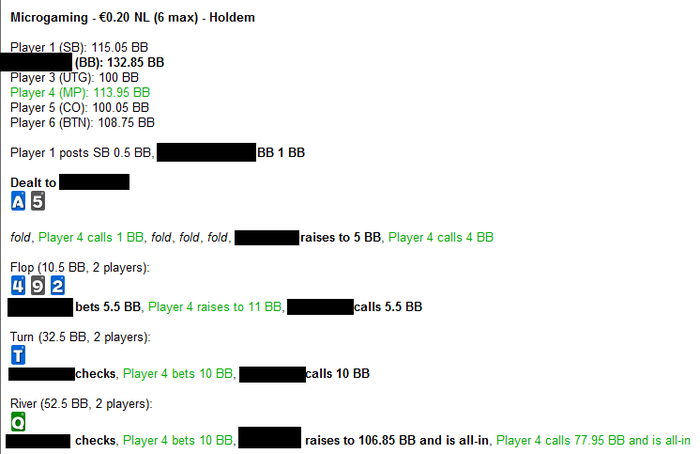 Ребятки, спор возник, рассудите) Анонимный стол, опп неизвестен, но лимп из мп как бы намекает. Есть ли блеф на ривере? По сути опп показывает дикую слабость, и на мой взгляд рука идеальна для блефа в таком споте. p.s. Сорри, конвертера для мпн так и не нашел)