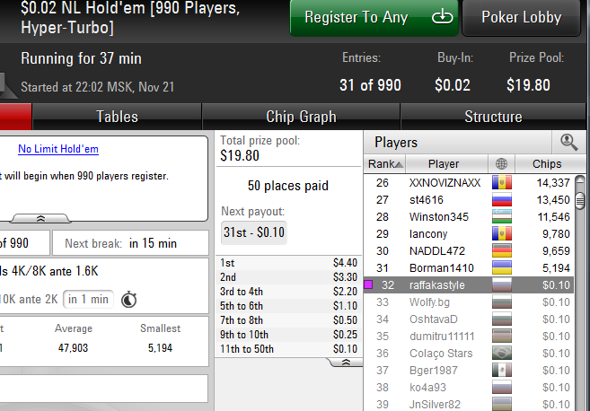 Начал где то подключать мтт за 0,55$ и уффф, зацепился таки, вышел на финалку. Ура. преодолел. Но оказалось преодолеть легко еще труднее удержаться...не хочу обратно, не хочу.