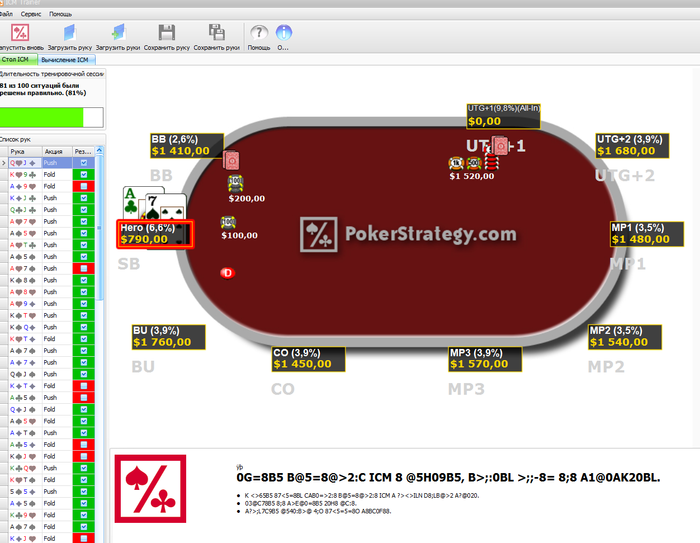 Заимел в арсенал HRC(знакомый поделился ключиком на 1 месяц) Буду стараться после каждой сессии разбирать крупные банки. перед игровой сессией короткая тренировка в ICM Trainer, хотя бы по 50-100 раздач, что бы диапазоны ПУШа записались в голову