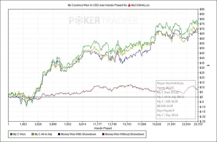 все на сегодня думаю, что закончил игру. Никак себя не могу настроить играть больше часов. Хочу отыгрывать около 5-7к рук, но устаю слишком быстро. Хотя еще недавно, это было для меня не проблема... За сегодня график