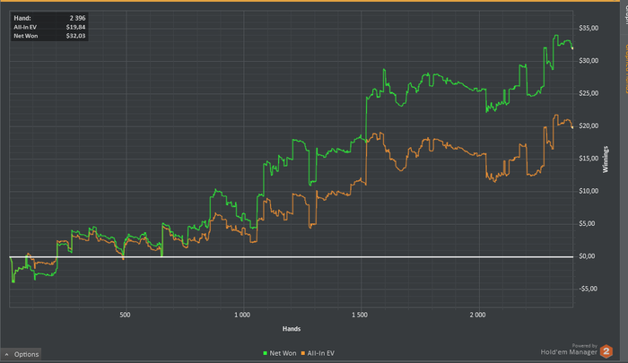 Вчера не играл,были дела.Сегодня буду пробовать прорваться через сателиты.В кассе 157$ которых не хватает на бай-ин.марафон провален,что меня огорчает.Так всегда,как только захочешь прилично поиграть,так сразу что-то мешает этому.Но с другой стороны за эти пару дней выиграл 80$ на микро,что радует