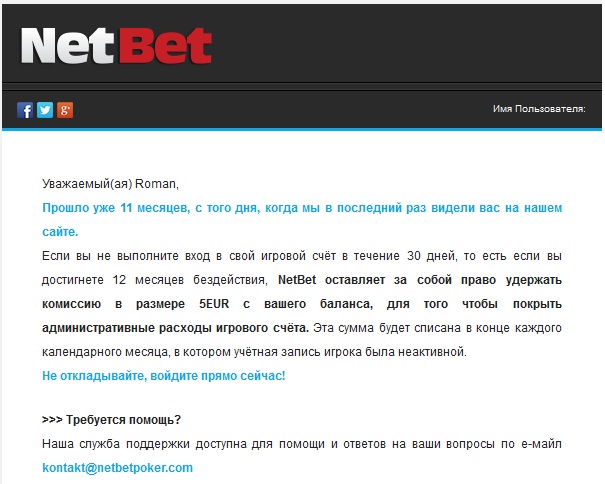 Лол, с патипокера уже давным-давно приходило аналогичное письмо с угрозой снимать деньги со счёта и угрозой заморозить аккаунт. Ну морозьте - на счету все-равно ноль-- я не идиот играть в говнорумах, где за вывод денег берут проценты( слышал что недавно вроде эти упыри одумались и отменили это ) Если до такого письма была хоть какая-то теоретическая вероятность того, что я депну в такой говнорум деньги и буду там играть, то после него просто снёс его с жёсткого диска вообще. Вывод простой - не играйте в говнорумах- не портьте себе нервы, так как учёные утверждают, что нервные клетки не восстанавливаются.