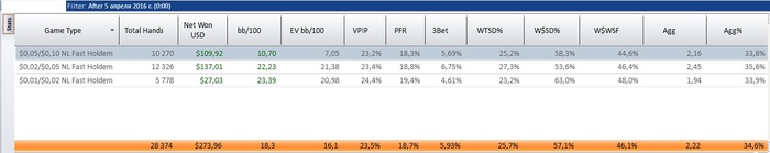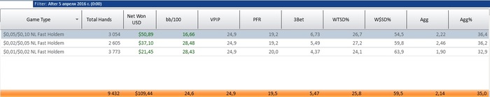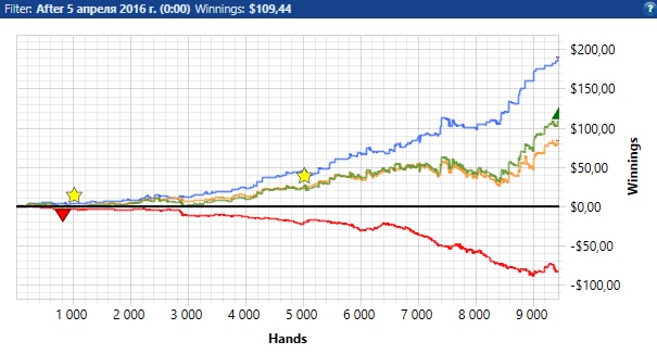 Катушечка идет неплохо, играю по 4-6 столиков микса до нл10. Статов нет, базу чистил перед тем как открыть свой блог, она в принципе и не нужна играю стандартно, онли велью рыбоориентед. Немного подбешивает то что нитовой девочкой стал, но ничего не загорами рег столы и нл25, а там уж наступит настоящее веселье с ввсф50, втсд 55-60, 3б 10-12, мечтать не вредно) но очень надеюсь, что все получится.