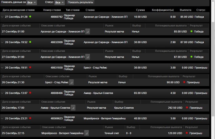 Снова увлекся ставками, в первый ра3 удалось отскочить в ноль.