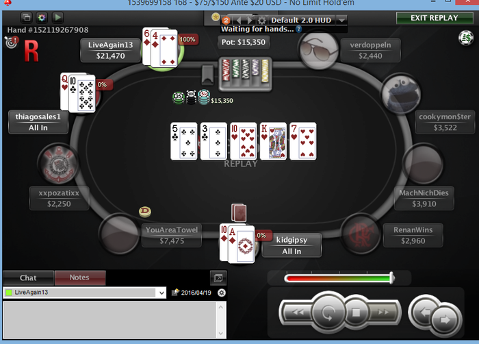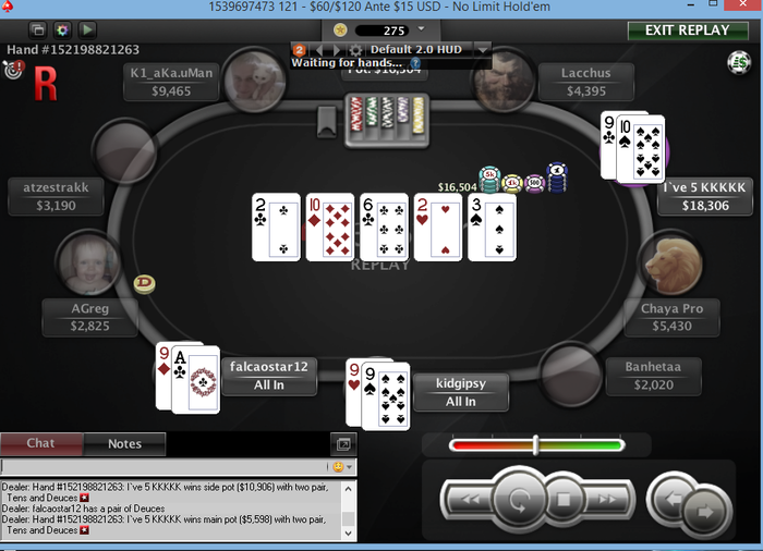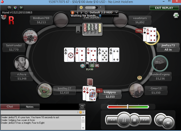 4,40$ THE BIGОткрываю x8 префлоп один колит, по флопу алл-ин в размере его стека, он колит. Удивляет, что весь стол сделал фолд, и именно он сделал колл, как будто знал что выиграет, кого в скайпе не спрошу все хором говорят никто не поставил бы 31% своего банкролла с 76o.