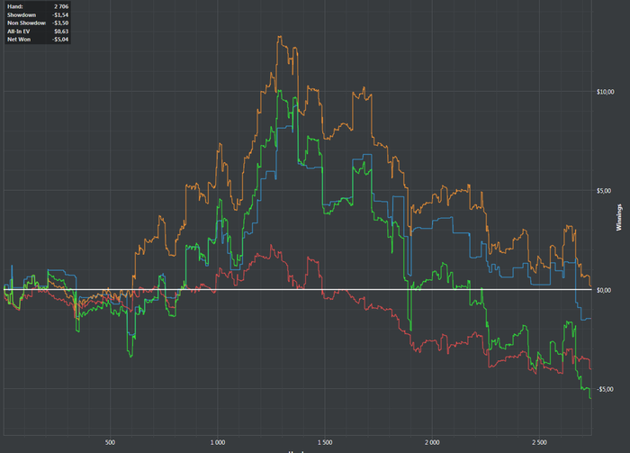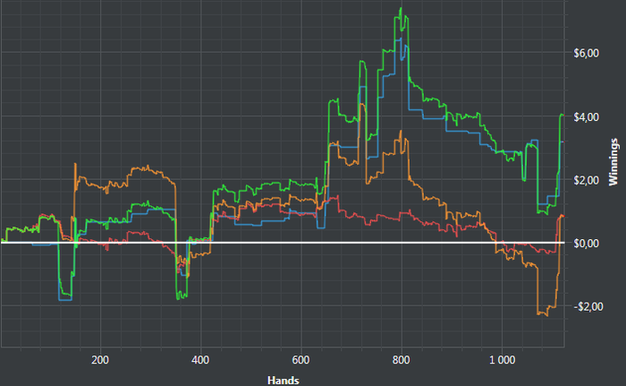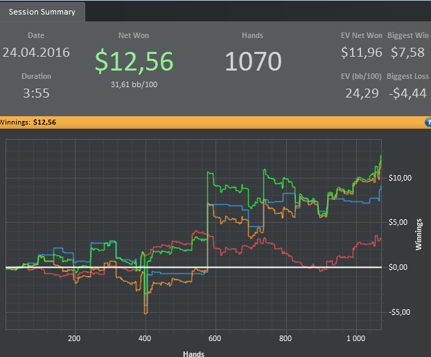 Сегодня отыграл только 1к рук, выкладываю отчёт, т.к после 00 считаю уже следующим днём. Особо много не играл - 6 столов и тщательный селект. Пока продолжаю, хотелось бы по 3к рук в день отыгрывать.