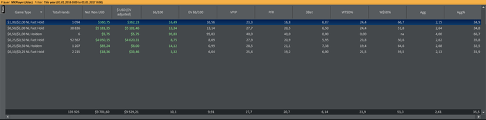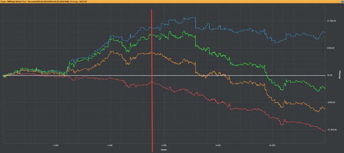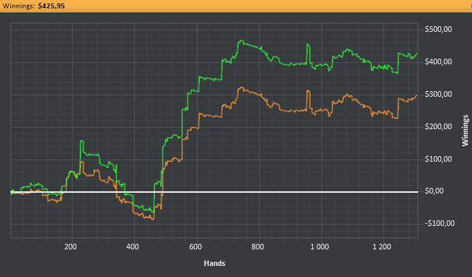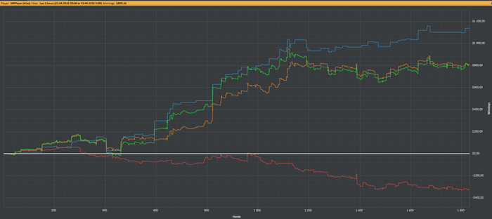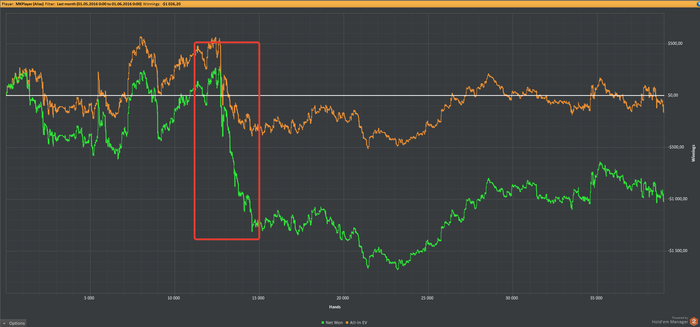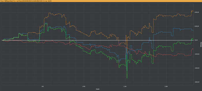 В сентябре 2014 я ушел из Яндекса и в январе 2015 я решил профессионально заняться покером, потому что это единственное занятие помимо спорта, которым я всегда занимался с удовольствием и мог посвящать много свободного времени ему. Вернувшись в покер, я понял, что все сильно изменилось за то время, что меня не было, и даже НЛ25 мне бить теперь довольно непросто. После фееричных 2000-ых годов, когда я легко бил НЛ100 любой винрейт, который меньше 10ББ/100 рук, я считал несерьезным (и до сих пор так считаю). Несколько месяцев напряженной игры, тренировок, работы над игрой, несколько попыток штурма НЛ50... в итоге я стал бить НЛ25, но НЛ50 шел очень с трудом. Но зарабатывать вроде стало уже можно и я пошел дальше.