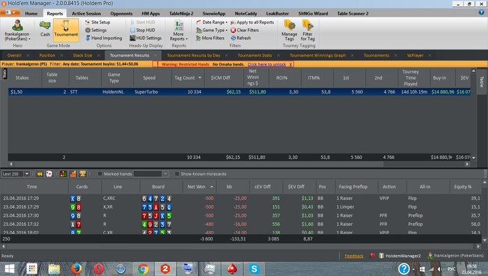 Всем привет. Зовут Михаил. Играю в покер уже давно начинал с кеша сейчас играю гиперы по 1.5 на старзах. Получается так себе многовато тильтую, хотя в игре вроде разобрался немного. Поставил себе цель отыграть за месяц 5к игр и посмотреть на результаты. Отчеты с графиками буду выкладывать регулярно.Просьба поставить +1 чтобы мог написать модератору. Всем успехов.