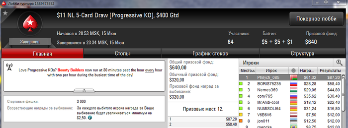 Почему в разделе низких лимитов!? По основной дисциплине игры очень мало и основной рабочий лимит сейчас - это вечерние турниры нокаут за $11, лимиты повыше играю во время серий.