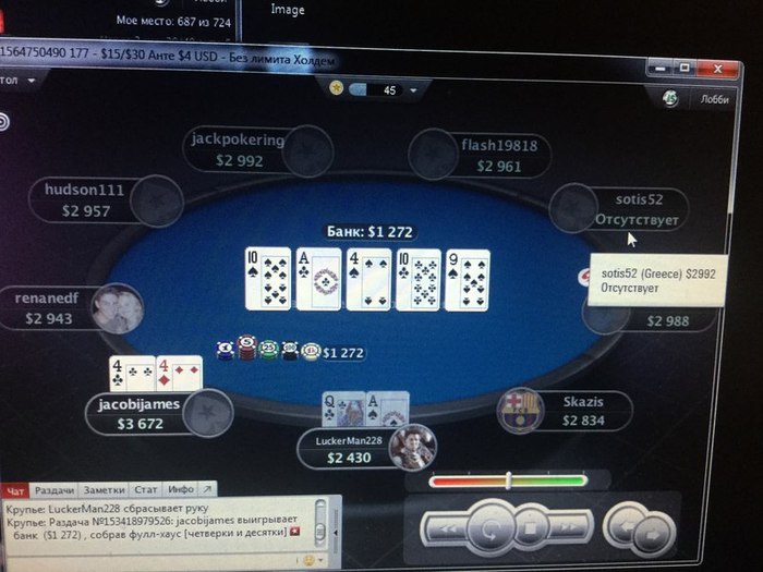 Вообщем катал сегодня около 16 часов подряд,в итоге утром меня во всех мтт по переезжали (билдер 3.3,нок 2.2,прогресив нок 2.2) но зато в СНГ 90 чел нокаут плюсанул) зашел на финалку 9из9, а дальше уже все зависело от карт и скила-в итоге 2 место) Дальше целый день меня переезжали(очень трудно было держать себя в руках) минусовал дико в итоге) под конец дня плюсанул в билдере 1.1 и 2.2 (5-10$)соответственно в итоге откатал в 0 (но -330 коинов еще)