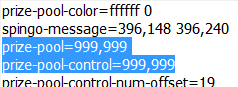 4. В поиске пишем prize-pool, и находим строки prize-pool=XXX,XXX prize-pool-control=XXX,XXX. Там, где я написал XXX,XXX, надо вставить цифры 999,999.