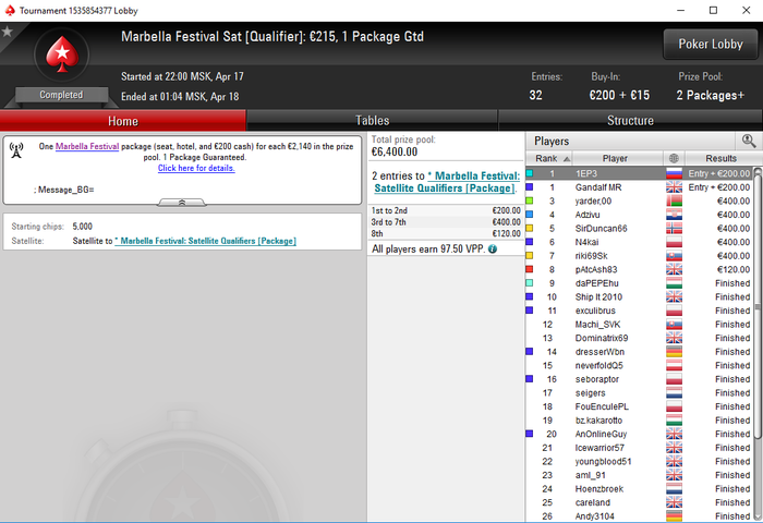 Куча турбо туриков, но это пиханина, пуш-фолд наступит очень быстро. Турик за 330 марбелья кап это вообще поле фишей непаханое, как 5долларовый на старзах) но и с переездами соответствующими, руки оппонентов могут удивить даже повидавших виды)