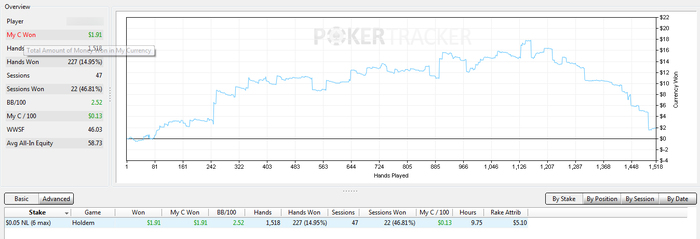 Зато у меня есть PT4. Знаете для чего создали сей мощный инструмент? Чтобы ты мог в любое время запустить его дефолтную конфигурацию и посмотреть на красивом графике результат в +0.01bb за 150k рук zoom5 :)