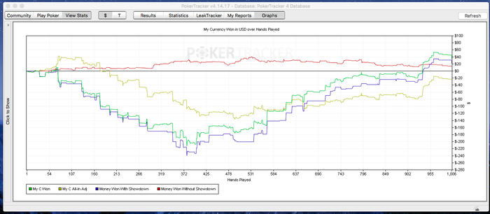 После последнего выложенного графика ушел ещё глубже в минус, теперь я понимаю тех, кто говорил, что в PLO минус 20 БИ -это нормально)) Один раз я правда закупился на 100ББ, но всё равно, проигранных стеков в 50ББ оказалось неприлично много.