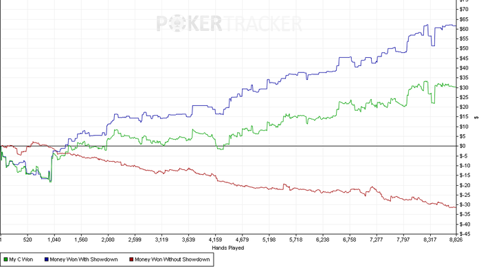 Посмотрел раздачи... Нашёл несколько ошибок. Но знаете, бОльшую часть рук я и сейчас сыграл так-же как сыграл. Получается мне вчера сильно не везло? Или я что-то принципиально не так понимаю...