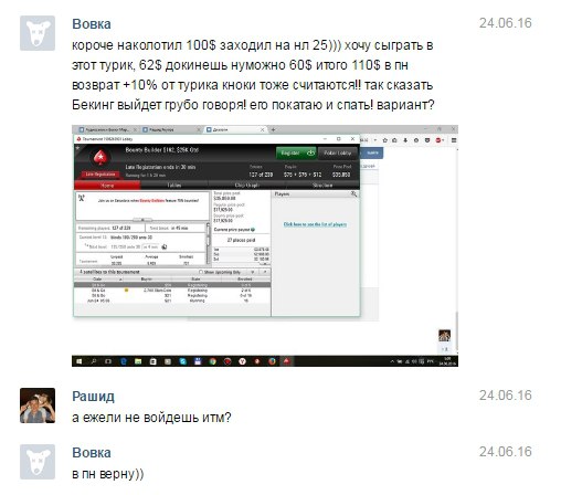 Parazzit @ 2.7.2016 Чувак просит 50 баксов покатать микро. А через пару часов просит докинуть ему ещё 60, чтобы сыграть турнир за 162. Вы сколько раз участник МММ?
