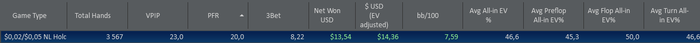 2. 10:30-11:30=60мин | 545 руки | ...0,51 .. | 1,87 | 5 с 10 | Comment: Хорошо отыграл, кулера, переезды. Texника: без грубых ошибок; Rating: 5 с 10 . Психология: мотивации польные штаны, катаю на уровне ; Rating: 5 с 10 .