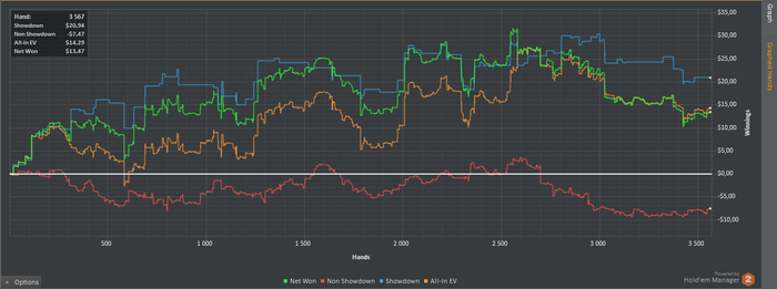 2): Меня не волнует сколько Я выиграл или сколько Я проиграл. Меня волнует качество Моей игры и получение удовольствия от нее. Я сегодня проиграл за одну мини сессию -9БИ и был доволен Своей игрой на 80%. По этому когда Я выигрываю 2-5-10 БИ Я смотрю где был АП, где по игре, делаю записи, и тд и тп. У Меня бывает что Я получаю удовольствие от сессии - больше чем от +, потому что если Я отыграл как дерьмо, но выиграл 10БИ, это по Моему мнению плохо.