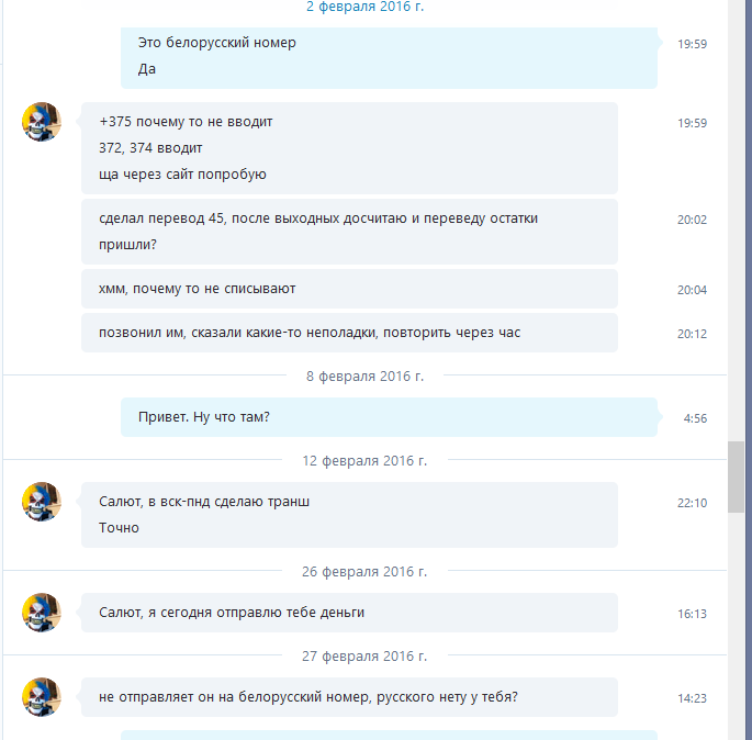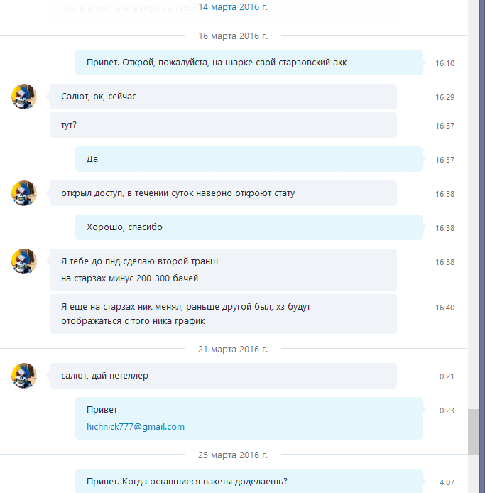 Началось все с того, что в прошлом году к своей покерной карьере игрока я решил добавить бэкерскую деятельность. На тот момент я обучался в 2cardscollege, контракт с которой обязывал продавать доли на бирже mtt-market. Так как местная кухня мне была более-менее знакома, я решил набрать "лошадок" из таких же, как я, учеников. Одним из них стал h0aX. Первые пару месяцев с ним не было никаких проблем. На момент отчета за 30.06.15 (это последний отчет) остаток моих средств был 191,03$. Дальше комментарии излишни, будет лишь переписка из скайпа: