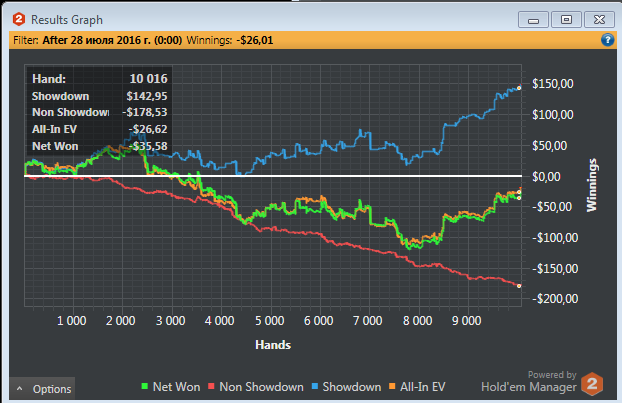 Я играл в кеш с винрейтом -30бб\100 ,тильтовал ,как сук*. Играть больше часа не мог...деньги заканчивались ха-ха . А? а? Как вам?)