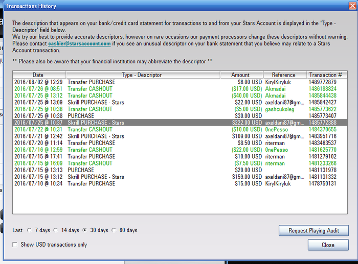 В итоге игрок должен залитые средства + бонусы + средства которые перевел себе = 574$.