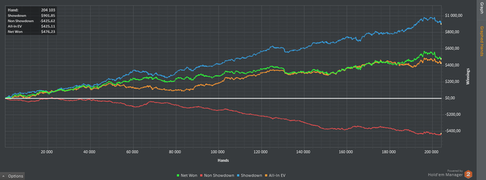 Спасибо за ответ,думаю соглашусь, но в первой раздаче тоже подходят Твои размышления по поводу полублефов или Кх, потому что если думать в вакууме то QQ+ пошли бы у среднего ОПа в выставление префлоп и АК тоже.