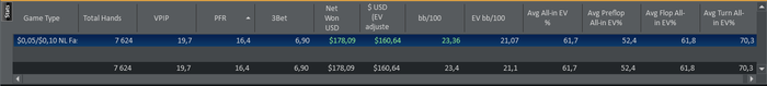 Start Bankroll 750$; Stop Banrkoll 926,74$; Cтолов 6; Мини сессий 6; Рук: 7624; Время = 360 мин; Результат = 178,09$ ; bb/100 = 23,36; Моя оценка = 5 с 10. Цель на день Net Won(24$) выполнена на 742%; Цель на день Hands (6200) выполнена на 122,9% Цель Руки на третий игровой отрезок за все дни (80К) выполнена на 9,53% (7624 рук); Цель NW & RB на третий игровой отрезок за все дни NW (400$) выполнена на 59,3% (178,09$), RB (50$) выполнена на 0% (0$); Comment: Апстрик и если с натяжкой то можно засчитать только 2 грубых ошибки, эти руки выложу дальше.