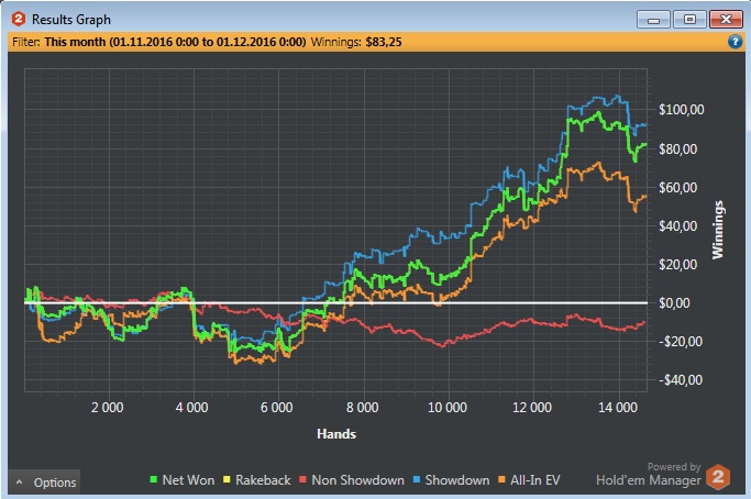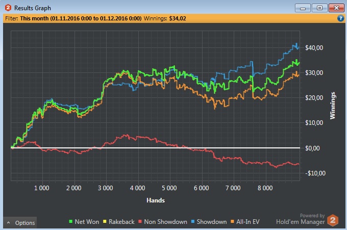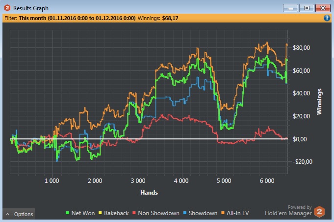 и я алкоголик, работаю. Весной поставил цель или начать поднимать какие-то деньги с покера (от 400$), или плюнуть на это дело. Я человек семейный, 3 детей, в общем потребность в деньгах есть всегда, а свободного времени на хобби нет. Сейчас очень близок к поставленной цели.С покером знаком с ноября прошлого года, не получал ничего ни от кого в те золотые времена, когда все катали нл1000000+. В один день друган меня достал, я тогда поигрывал в хартстоун, и он меня пилил при каждом удобном случае, что я не в те карты играю. Пришлось изучать те. Сначала катал sng, mtt на pokerastars, потом уговорили зарегистрироваться на 888 от академии покера (не реклама), где катал турики до февраля. В феврале перешел в кэш. За 1 месяц побил нл5 и нл10 по МСС стратегии. С марта этого года играю БСС. За март побил нл5 рег столы, за апрель нл10 рег столы и прогресс встал. Начал заниматься индивидуально (очень повезло с тренером, хз что было бы, если б нас не познакомили) и вернулся на старзы. За конец мая и июнь побил нл10 зум, попробовал нл25 не пошло, вернулся на нл10. Подтянул теорию и июль откатал нл25 зум в 0. Сейчас пытаюсь поднять винрейт до 3-4 бб/100. Что-то получается, что-то нет. На 888 больше не играю, считаю это пустой тратой времени. Только старзы, только зум 6 макс.