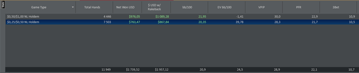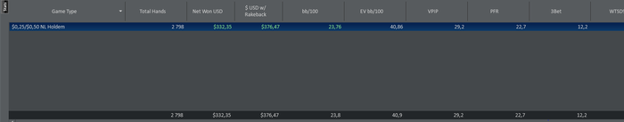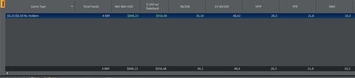 View hand 2948592DeucesCracked Poker Videos Hand History ConverterBTN/SB: $151.16 - VPIP: 34, PFR: 22, 3B: 10, AF: 2,2, Hands: 1077Hero (BB): $52.13 - VPIP: 28, PFR: 22, 3B: 11, AF: 2,2, Hands: 37106