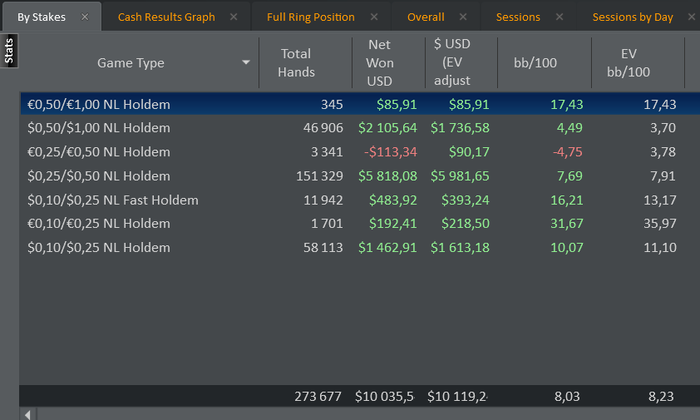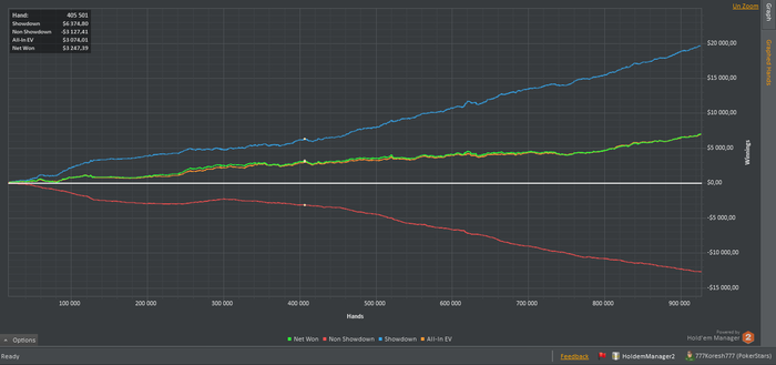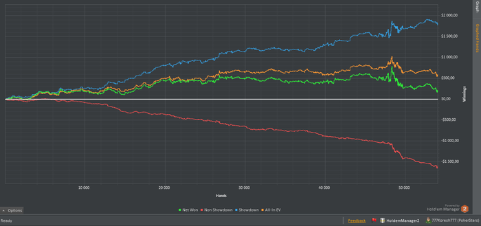 Обо мне: Играю в покер уже около 7ми лет, за все время был 1 минусовый месяц, по глупости, все остальные плюс Начинал с вк на голоса, понял что покер мое, продал голоса и перебежал на ПС там и живу уже 7лет.. Играл даблы 5-10$ тащил по 500-800$/мес - закрыли даблы, потом играл 9макс турниры, тащил битву планет, сидел в вечом топ 5 битвы планет, тащил 1,5к-2к$/мес - закрыли битву планет, перешол на мтснг 180чел 4,50 тут поперло очень не хило, без напряга тянул 3-3,5к$/мес примерно до 2015 года, попутно играл МТТ но особо ничего там не тащил.. Кстати играл я без ХМа или трекера)) После этого мтснг заполоняли реги щас там вобще поле больное профит все падал и я решил пойти в кеш.. Вот уже год как я играю кеш нл25-нл100 ФР, на нл25 профиты неплохие на остальных неособо.. кароч скатился я до 700-1000$/мес Играю 18-22стола