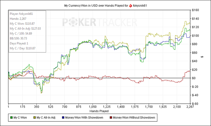 немного о своей игре ,наверное кто то видел меня за столами и некоторые не в восторге от моей игры, начал играть нл2 с банкролла 9 долларов все время играл без HUDA и только месяц назад он у меня появился с выходом на НЛ16 и что то без него я играл лучше чем с ним (шутка) просто так совпало наверное, играю очень по разному очень много переключаю передачи что и дает возможность выигровать очень крупные банки с сильными руками когда меня вскрывают по третей паре или даже А хай в алл-ине на ривере!