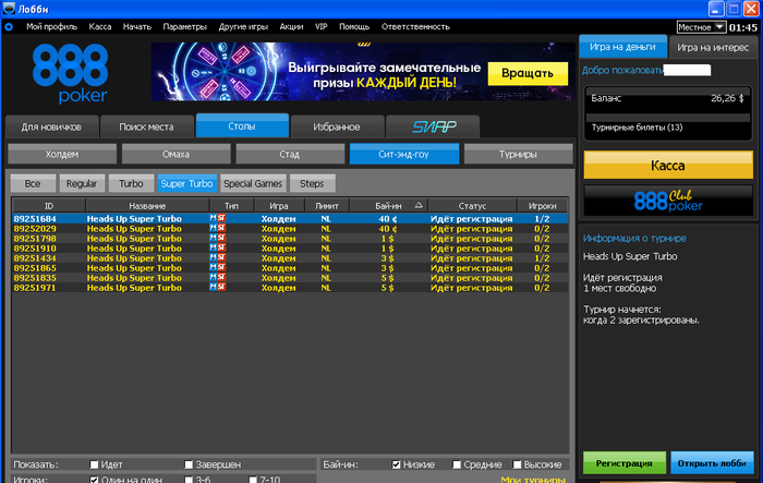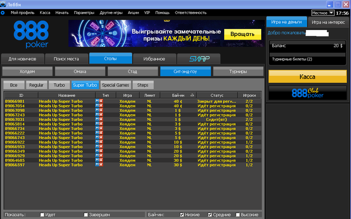 Играть буду hyper turbo hu sng, начиная с самых низов на 888ках.