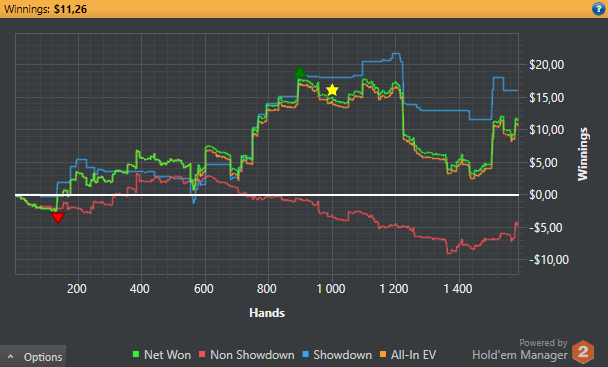 Разбор раздач, обсуждение рейнджей, игра по ГТОвыкладывать графики где удалось поднять деньжат, и ныть когдасоперникам закрывают их 50+% при выставлениипереезжают. Т.к. мой друг (настоящий, не воображаемый) запрещает в таких ситуациях ему нытьВообще для меня покер на данный момент это вещь, с помощью которой можно заработать доп. деньги на какие то приятные плюшки. На данный момент появилась цель: Египет 2017, где-то в марте. Цена вопроса около 1000 $. К ней мы и будем стремится. Есть работа, на которой даже получается зарабатывать деньги, на жизнь вроде хватает, если с покером будет все плохо, придется откладывать деньги на поездку оттуда, чего не хотелось бы. Поэтому с покером будет все хорошо!