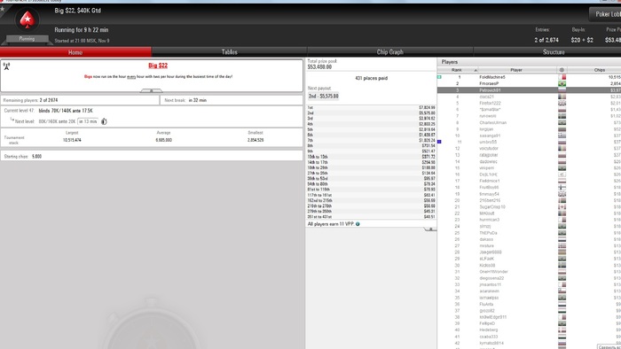 8) 21:00 Progressiive KO 16.50$ 0 $