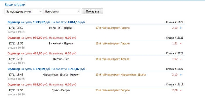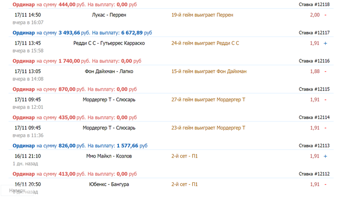Всем добро пожаловать.Решил завести блог дабы следить за своим профитом на протяжении дистанции и делиться опытом об игроках ATP или же челленджеров АТП и женских ITF(онли брейки) Банкролл 18к.руб+.Бр поделил на 3 части-выходит по 6100р(с каждым разом будем увеличивать бр на начало дня и играю 4 ступени догона. Постараюсь вести отчет профита после каждого игрового дня.Поехали!