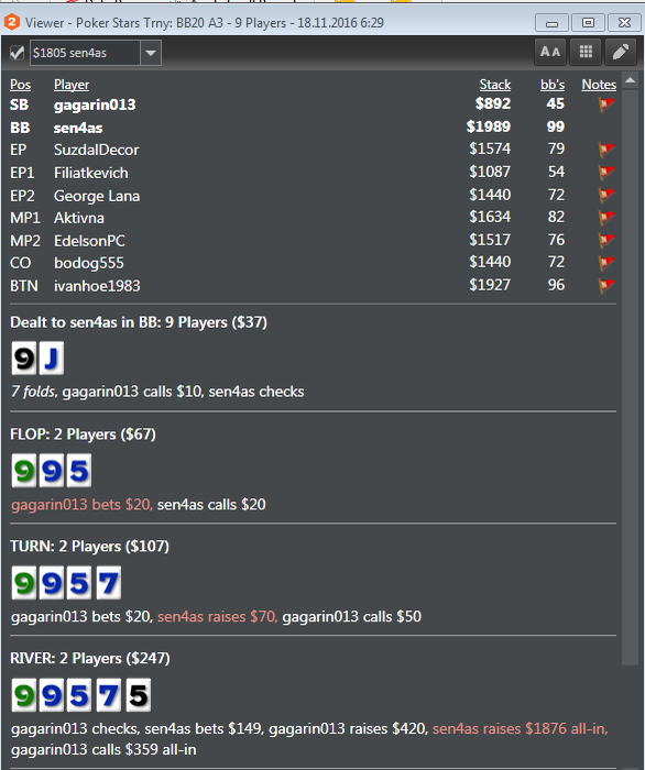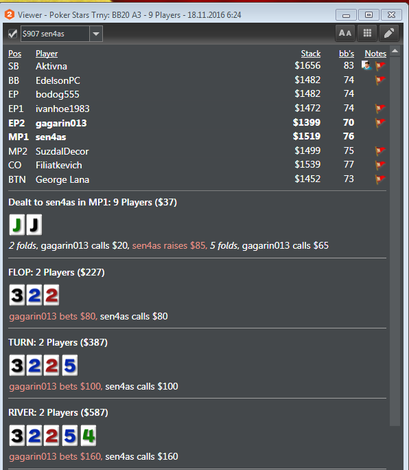 А вот здесь как собрать велью с оппонентов? Тот который открылся рейзом в 100 процентах случаев выбрасывает на 3 бет. Коллер фиш. МОжет стоило чуть чуть уменьшить сайзинг?