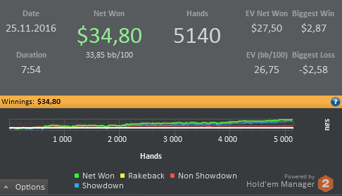 Вчера начал играть снгэшки( не пошло). на оставшиеся 2-3$ начал играть в кэш зум, в общем дошел до за пару часов дошел на нл 10 набив 50$, затем пару куллеров, как итог слив. Заблочил кэш до нл 2. сегодня откатал небольшую сессию вот результаты. БАНКРОЛЛ 23$