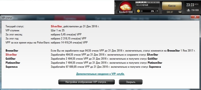 После проигрыша сателлита у меня было примерно 280$ и около 900 VPP, не хватало ещё 1600. Потом я забил и вот в последние дни решил играть.
