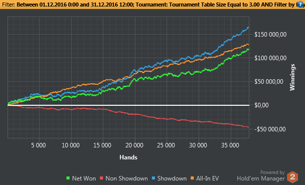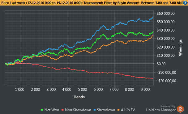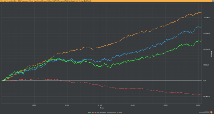 в ноябре 2016 решил попробовать снова, начал с 60 баксов, на данный момент набил уже 200 байинов 7 лимита. Чип ев на 3-88 при дистанции 2400. На 7-77 при дистанции 950. Покер не основная работа так, а как доп. Источник дохода так, что дистанции особо не набираю.занимался фондовым рынком 3 года, на форексе 4 года.Пока так. Графики выложу чуть позже.