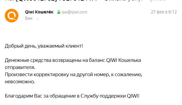 Благодарим Вас за обращение в Службу поддержки QIWI!''