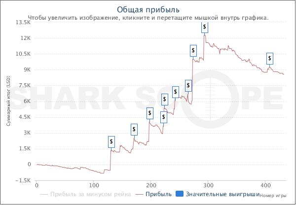 27 saturd elim. на старзах(1 место 11153$) 55+r старзы (1 место 6929$) омаха 215 (2 место 3808$) 162 на пати (2 место 4084$) 215 на пати(5 и 16 место 2525$ и 2100$) и по 1$ на пати (1 место 1875$).Последние годы изредка закидывал от 1000 р до 5000р, максимум что получалось это раскрутиться на недорогих мтт до 500-700$.