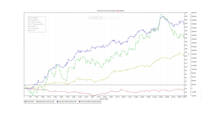 Всем привет! В покерок играю с 2014 года где-то. Результаты так себе. Долгое время не мог определиться во что все таки играть МТТ, МТСНГ или СНГ. Нравится все, но подняться на микролимитах МТТ - это для избранных. И вот я играю СНГ 0.5 турбо 9 макс. Банкролл более чем комфортный, 200 бб. Многие скажут иди катай полторашки, но я ссыкло.