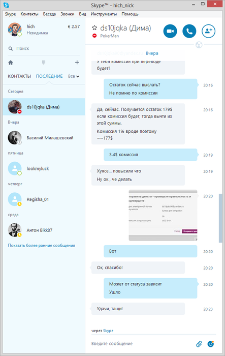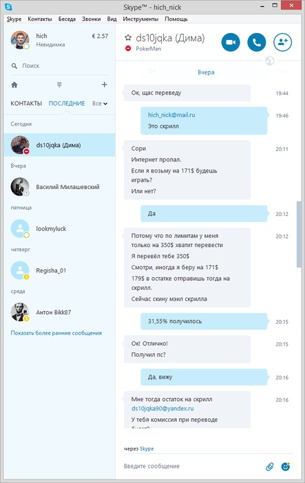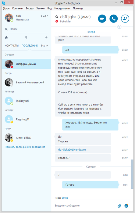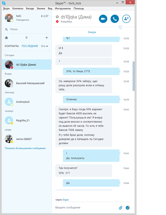 У меня только одна неувязка. В первом посте в скайпе мошенник выдает себя за ds10.... и говорит, что неоднократно брал доли. В то же время ds10.... утверждает, что не знает, кто Хищник такой. Если ds10... действительно не брал раньше доли у Хищника, как можно было не насторожиться? Еще вкупе с просьбой перевести на скрилл...
